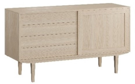 Flot ny let skænk i eg hvidolie med 4 x push up skuffer med soft close samt 1 x skydelåger Finde med fast låge eller med Glas låge hvor der kan lægges Led lys og transformator ( tillæg kr. 495 ). Mål 130 x 80 x 44 cm