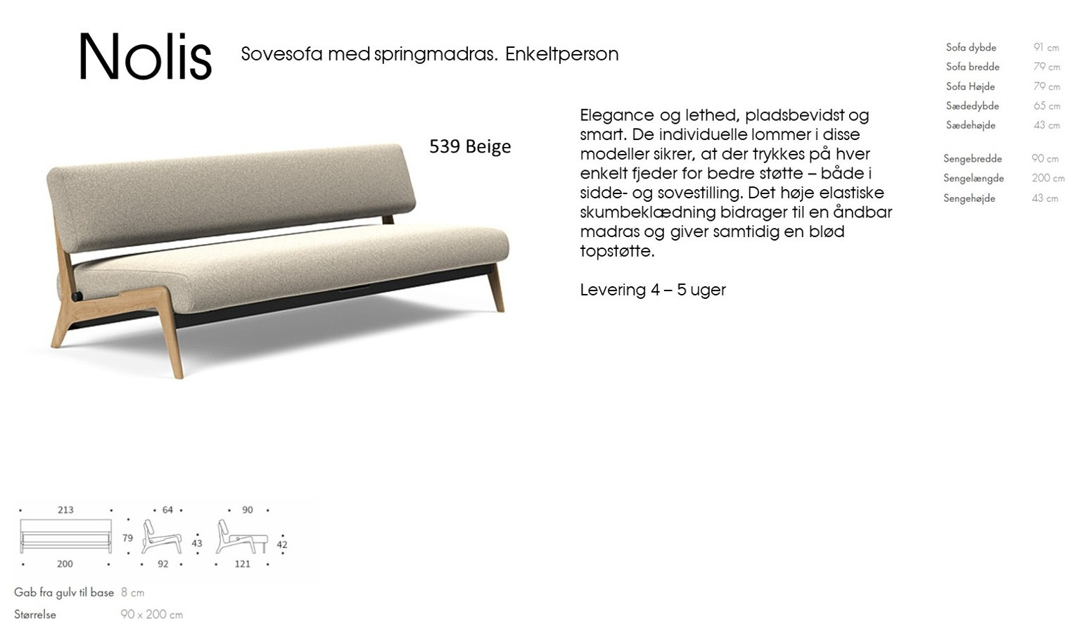 Sovesofa i Dansk Design fra Dansk Fabrik i flot kvalitet Sovesofa til en person og og flot ryglæg - Smart udtræksystem Mål 91 cm x 200 cm Sovemål 90 x 200 cm Sengehøjde 43 Sædedybde 65 Sofahøjde 79 cm