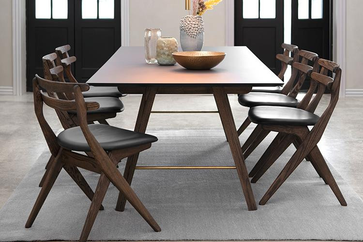 Let flot Saks spisebordsstol, Findes i læder eller stof i flere varianter, Træ kan laves i ask eller i eg i mange bejdsninger